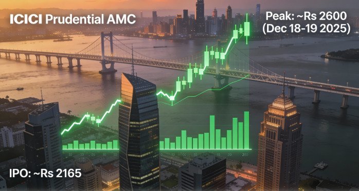 ICICI Prudential Asset Management Company (AMC) listed on NSE at ₹2,600 per share on December 19, 2025, marking a 20.09% premium over its IPO price band of ₹2,061-₹2,165.